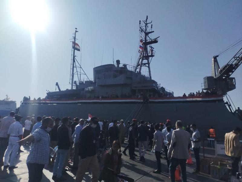 حيث استقبل ميناء سفاجا البحرى صباح اليوم احدى الوحدات البحرية التابعة للقوات البحرية المصرية والمخصصة لنقل الركاب وعلى متنها 466 عائداً من المصريين وعدد من رعايا الدول الاخرى العالقين بدولة السودان ( 272 مصري و184 سوداني و5 بريطاني و1 أمريكي و1 كيني و3 رواندي ) وكان في استقبال العائدين اليوم بتكليف من الفريق مهندس كامل الوزير وزير النقل اللواء مهندس محمد عبدالرحيم رئيس هيئة موانئ البحر الأحمر والمهندس سيد متولى رئيس جهاز تنظيم النقل البرى الداخلي والدولي