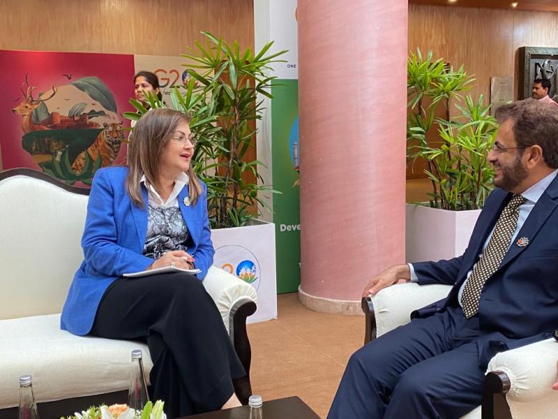 التقت هالة السعيد وزيرة التخطيط والتنمية الاقتصادية بالدكتور سعيد الصقري وزير الاقتصاد العماني، وذلك على هامش فعاليات اجتماع وزراء التنمية ضمن أعمال مجموعة العشرين بالهند في الفترة بين 11 إلى 13 يونيو الجاري، حضر اللقاء منى عصام مساعد وزيرة التخطيط لشئون التنمية المستدامة.