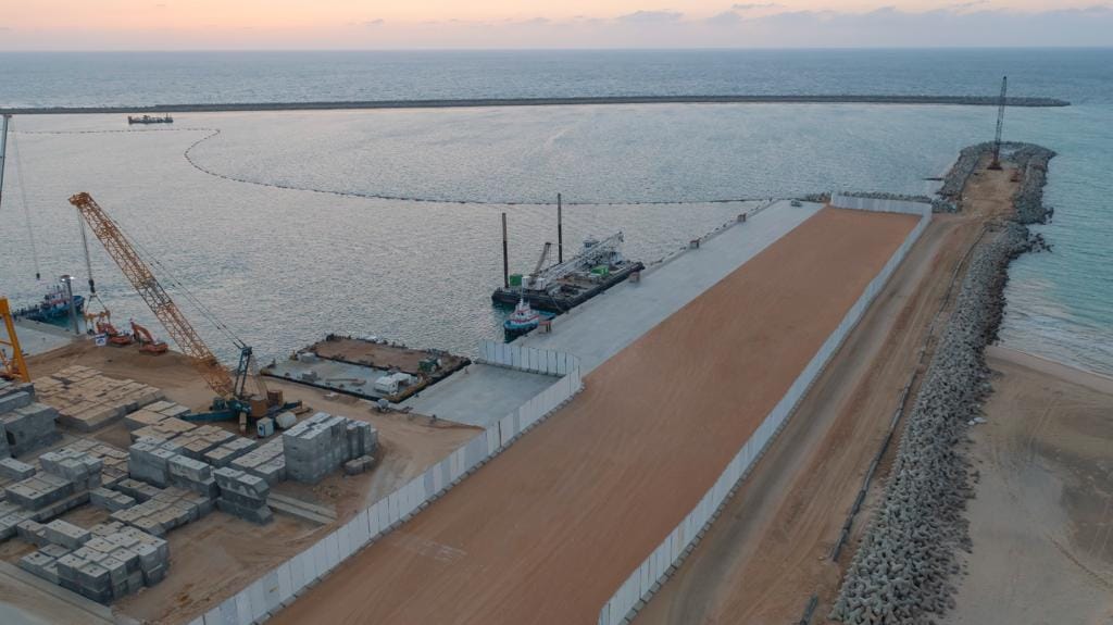 كما صدر القرار الجمهورى رقم 465 لسنة 2021 والمتضمن زيادة المساحات المخصصة للميناء لتبلغ 541.83 فدان وانه فور صدور القرارات الجمهورية أسندت الهيئة الإقتصادية لكلية الهندسة جامعة الأسكندرية إعداد مخطط عام للميناء ليتماشى مع أحدث المعايير الدولية.