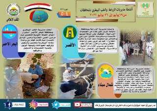 فيما واصلت مديرية الزراعة بمحافظة اسيوط المرور على مراكز تجميع القمح والصوامع، لمتابعة عمليات التوريد، كذلك المرور على زراعات عباد الشمس بمركز القوصية وذلك للاطمئنان على حالتها وخلوها من الإصابة بالآفات والامراض، كذلك أعلنت مديرية الزراعة بمحافظة قنا عن الانتهاء من زراعة الحقل الإرشادي الثاني بزمام ناحية الكلاحين مركز قفط بعد نجاح الحقل الإرشادي الأول الموسم السابق بناحية الخادمة مركز قنا، كذلك كثفت مديرية الطب البيطري بمحافظة الأقصر، أعمال لجان التقصي والترصد الوبائي ولجان التحصين والإرشاد البيطري بكافة أسواق الماشية، استعدادا لعيد الأضحى المبارك.