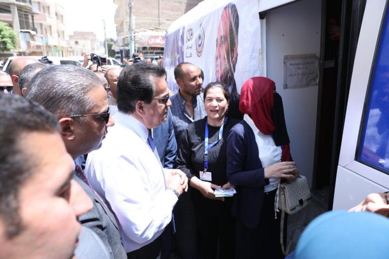 وزير الصحة يتفقد مقر حملة 100 يوم صحة بكفر محفوظ ويوجه بمدّ ساعات العمل لـ 10 مساءً
