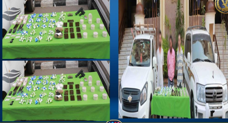 ضبط (ثلاثة أشخاص "لإثنين منهما معلومات جنائية") حال إستقلالهم سيارتين بالقرب من مسكنهم بدائرة مركز شرطة التل الكبير .. وبحوزتهم (كمية لمخدر الهيروين وزنت 4,500 كيلو جرام – كمية لمخدر الأيس "الشابو" وزنت 1,500 كيلو جرام – عدد 10 طربة لمخدر الحشيش وزنت 1 كيلو جرام – مبلغ مالى – طبنجة صوت - عدد من الطلقات لذات العيار - 6 هواتف محمولة – ميزان حساس – رادع كهربائى).