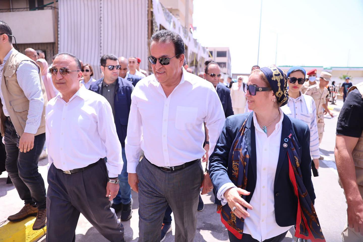 واستكمل «عبدالغفار» أن الوزير، تابع ندوات التوعية الصحية المخصصة للأطفال، مشيدًا بجهود الفرق الصحية وفرق التوعية، كما اطمأن على التواجد الكامل لكافة الفرق الطبية، بمختلف التخصصات، واطمئن على توافر مخزون الأدوية والمستلزمات الطبية، موجهًا بالبدء في وضع خطة لإنشاء مركز ووحدة صحية لساكني (بشاير الخير)، كما حرص على التحدث مع المواطنين للتأكد من حصولهم على الرعاية الصحية والعلاجية على الوجه الأكمل، وبالمجان.