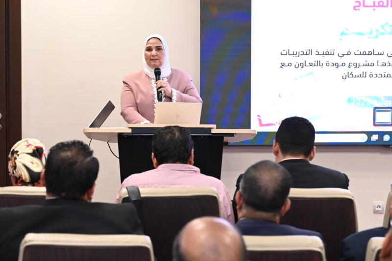 وأشارت وزيرة التضامن الاجتماعي إلى أن احتفالية اليوم ليست باحتفالية واحدة فقط، بل ثلاثة احتفالات مختلفة، الأولي تتوافق مع عنوان فاعلية اليوم، حيث نتشارك سعادتنا بحصاد إحدى المُبادرات الهامة للمشروع القومي للحفاظ على كيان الأسرة المصرية "مودّة" وهي مبادرة التدريبات المتخصصة للمخطوبين التي تم إطلاقها في ديسمبر 2020 بالتعاون مع صندوق الأمم المتحدة للسكان، وقد جاء إطلاق هذه المُبادرة من واقع ما تم رصده خلال العمل الميداني وكاستجابة لطلب العديد من الشباب الذين تم تدريبهم وطالبوا بوضع برنامجاً يُمكِّنهم من الحضور مع شريك/ة العمر المستقبلية ليستمعوا سويّا لمحتوى تدريبي مُتكامل يعرض أُسس إدارة الحياة الزوجية بجوانبها المختلفة؛ جوانب اجتماعية ونفسية، وجوانب شرعية، وجوانب صحية، وقد شكّلت هذه المُبادرة نقلة كبيرة في المشروع ورؤيته؛ فبعد أن كانت الفئة المستهدفة هي الشباب في الفئة العمرية من 18 إلى 25 عاماً، توسّع المشروع من خلال استهدافه لفئة المخطوبين بمختلف الأعمار وعلى مستوى جميع المحافظات.