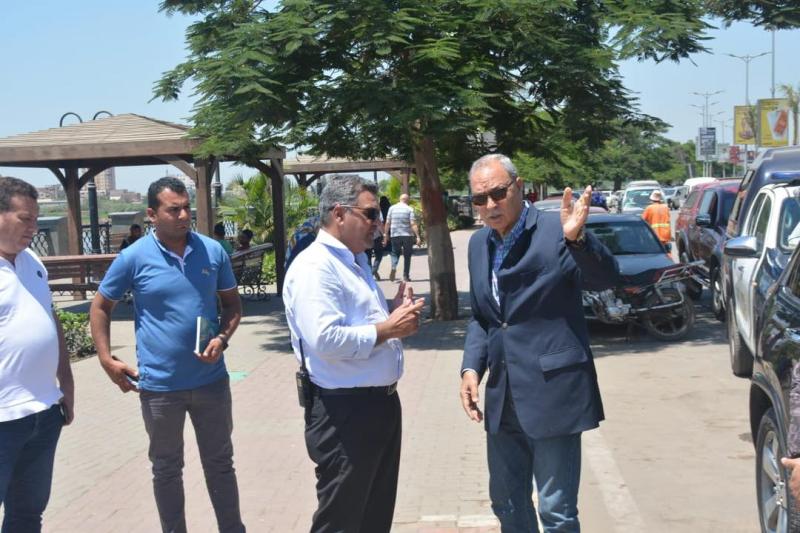 بدأ المحافظ الجولة بتفقد كورنيش النيل بمنطقة الفيلات أمام ديوان عام المحافظة حيث وجه المحافظ بإستمرار أعمال النظافة والتجميل بالكورنيش من خلال الاهتمام بالأشجار وريها بإنتظام وتدعيم الأحواض بالزرع واستبدال الأشجار التالفة، كما وجه المحافظ بزيادة عدد المقاعد الخشبية لاستيعاب عدد أكبر من المواطنين بالإضافة إلى دهان المقاعد القديمة ودهان البيرجولات والحوائط ومراجعة أعمال الصيانة لأعمدة الكهرباء ورخام الأرضيات .