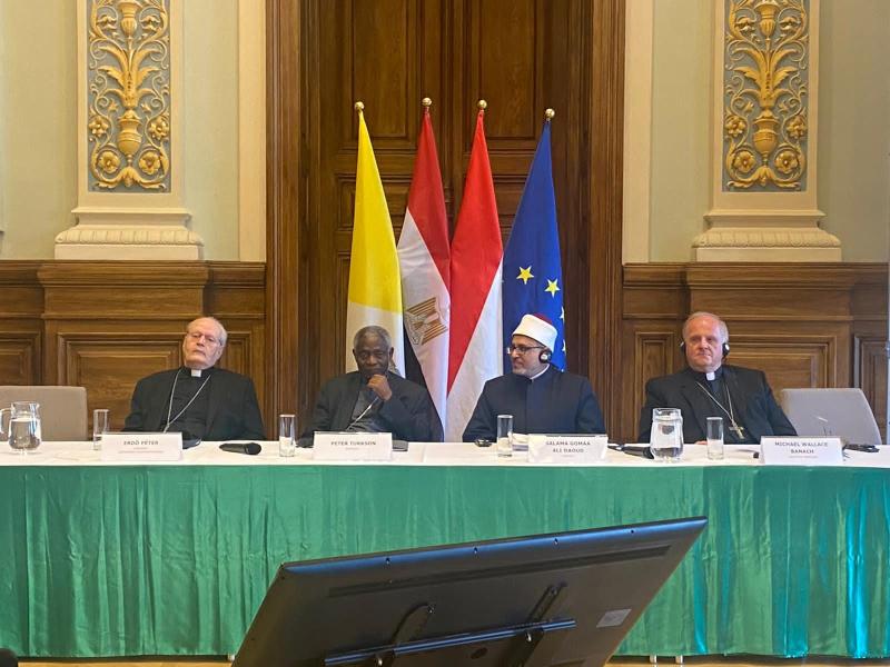 اللهم لك الحمد حمدًا كثيرًا طيبًا مباركًا فيه كما يُحِبُّ ربُّنا ويَرْضَى، اللهم صلِّ على سيدنا محمد خاتم الأنبياء والمرسلين، وعلى سيدنا موسى كليم الله الذي صنعه على عينه، وعلى سيدنا عيسى كلمة الله ورُوْحُهُ التي ألقاها إلى مريم البتول، وعلى جميع الأنبياء والمرسلين، الذين أمرنا الله تعالى أن نؤمن بهم جميعا وأن لا نفرق بين أحد منهم؛ فقال في محكم التنزيل: {آمَنَ الرَّسُولُ بِمَا أُنْزِلَ إِلَيْهِ مِنْ رَبِّهِ وَالْمُؤْمِنُونَ كُلٌّ آمَنَ بِاللَّهِ وَمَلَائِكَتِهِ وَكُتُبِهِ وَرُسُلِهِ لَا نُفَرِّقُ بَيْنَ أَحَدٍ مِنْ رُسُلِهِ وَقَالُوا سَمِعْنَا وَأَطَعْنَا غُفْرَانَكَ رَبَّنَا وَإِلَيْكَ الْمَصِيرُ} ( سورة البقرة آية 285) نيافة القس جيزا كوميناتز، رئيس جامعة بيتر بازماني الكاثوليكية، معالي السيد جيرجيلي ديلي، رئيس جامعة الخدمة العامة لودوفيكا، الحضور الكرام...أحييكم بتحية الإسلام، وتحية الإسلام هي السلام: السلام عليكم ورحمة الله وبركاته، وأنقل لكم تحيات العالمِ الجليلِ فضيلةِ الإمامِ الأكبرِ الأستاذ الدكتور أحمد الطيب، شيخِ الأزهر الشريف رئيس مجلس حكماء المسلمين، ناقلًا شكره الجزيل على أن وجهتم الدعوة لفضيلته لإلقاء كلمةٍ في هذا المؤتمر المتميز؛ تأكيدًا على عمق الصداقة المصرية المجرية التاريخية، وتقديركم الكبير لما يقوم به فضيلته من دور بارز في الحوار بين الأديان.