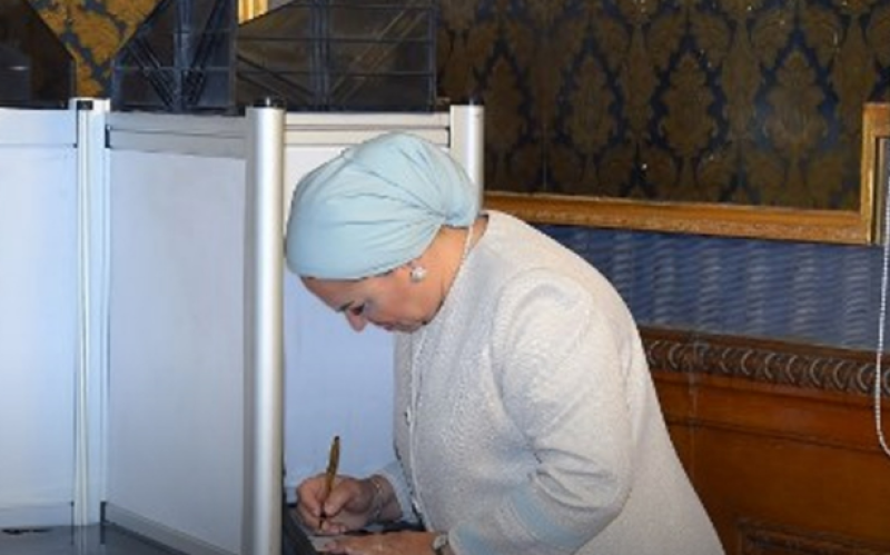 قرينة المرشح الرئاسى عبد الفتاح السيسي تدلى بصوتها فى الانتخابات الرئاسية