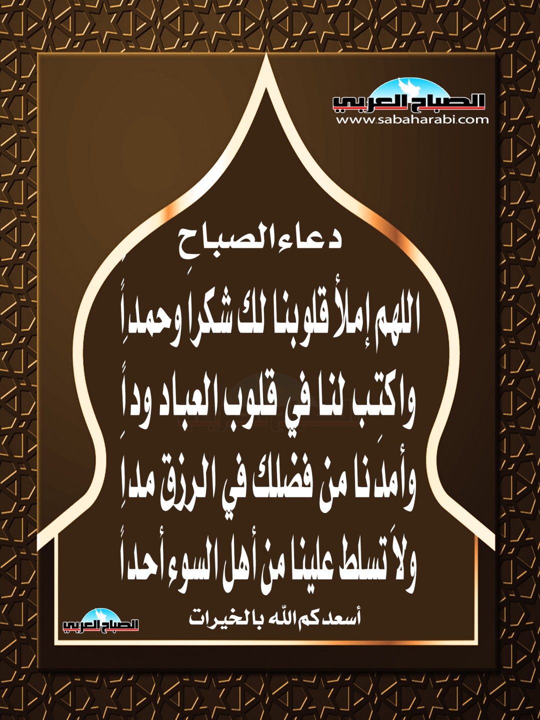 اللهم إمـلأ قلوبنا لك شكراََ وحمداًَ واكتب لنا في قلوب العباد وداًَ وأمِدَنا من فضلك في الرزق مداََ ولا تسلط علينا من أهل السوء أحداًَ.