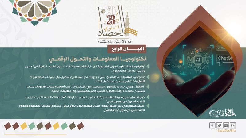 البيان الرابع لحصاد دار الإفتاء المصرية 2023 في الاستفادة من تكنولوجيا المعلومات