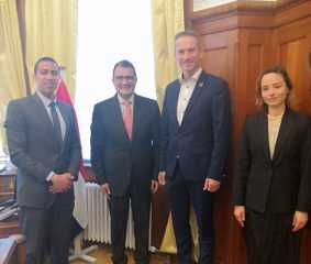 التقي السفير معتز مصطفي عبد القادر سفير جمهورية مصر العربية في جوبا بالسيد/ Madut Biar Yel وزير النقل الجنوب سوداني، حيث شدد على حرص مصر المستمر علي تقديم مختلف اوجه الدعم للجانب الجنوبي في كافة المجالات وبخاصة تطوير شبكات الطرق، وكذا تطوير الملاحة النهرية اتساقا مع خطة جنوب السودان الاستراتيجية لتطوير هذا القطاع الهام وتحقيق اقصي استفادة ممكنه منه.