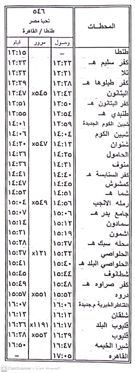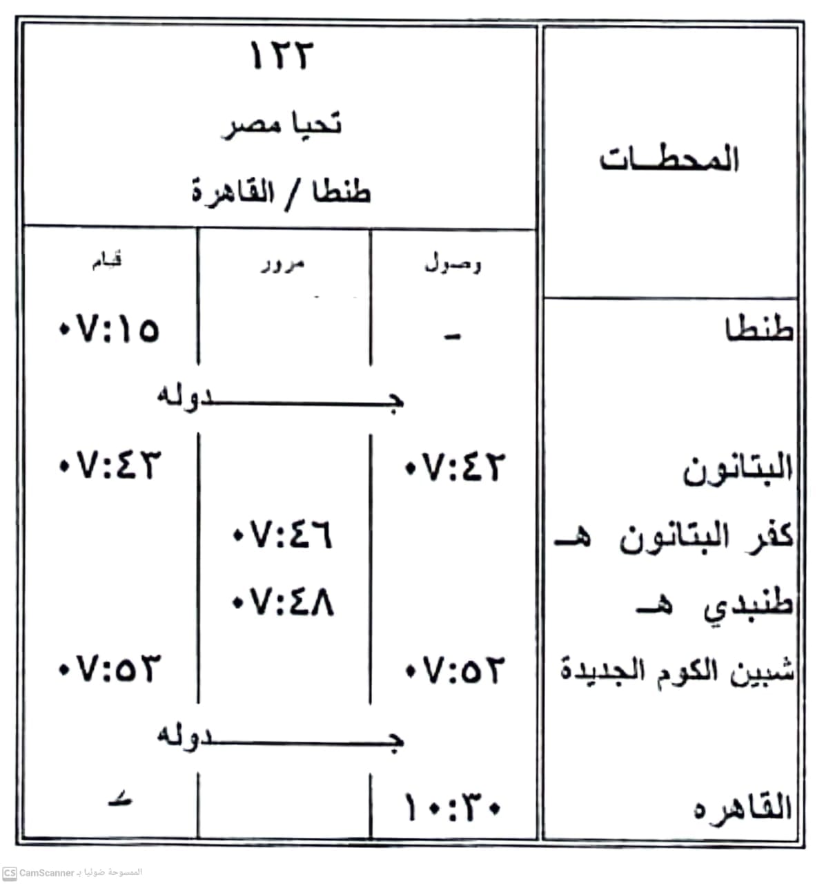 انطلاقا من حرص الهيئة القومية لسكك حديد مصر علي راحة جمهور الركاب وتلبية لرغباتهم قررت الهيئة تعديل ميعاد قطار 546 ركاب طنطا / منوف / القاهرة ووقوف قطار 122 تحيا مصر طنطا / القاهرة بمحطة البتانون وبيانهم كالآتى :