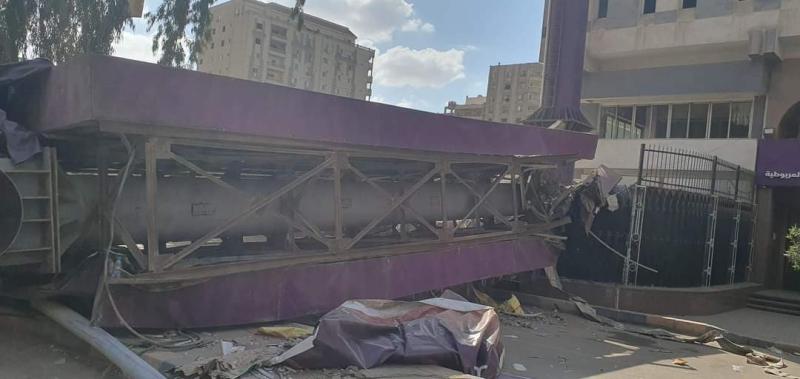 سقوط لوحة إعلانية تزن طنا على سيارة بالجيزة تؤدى لتدميرها