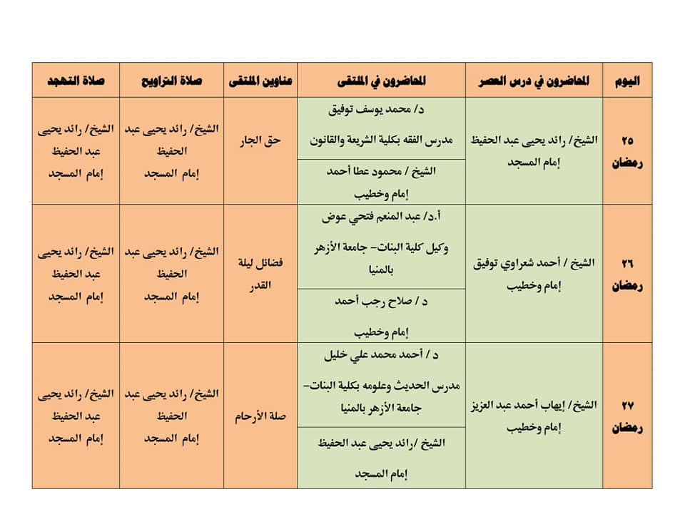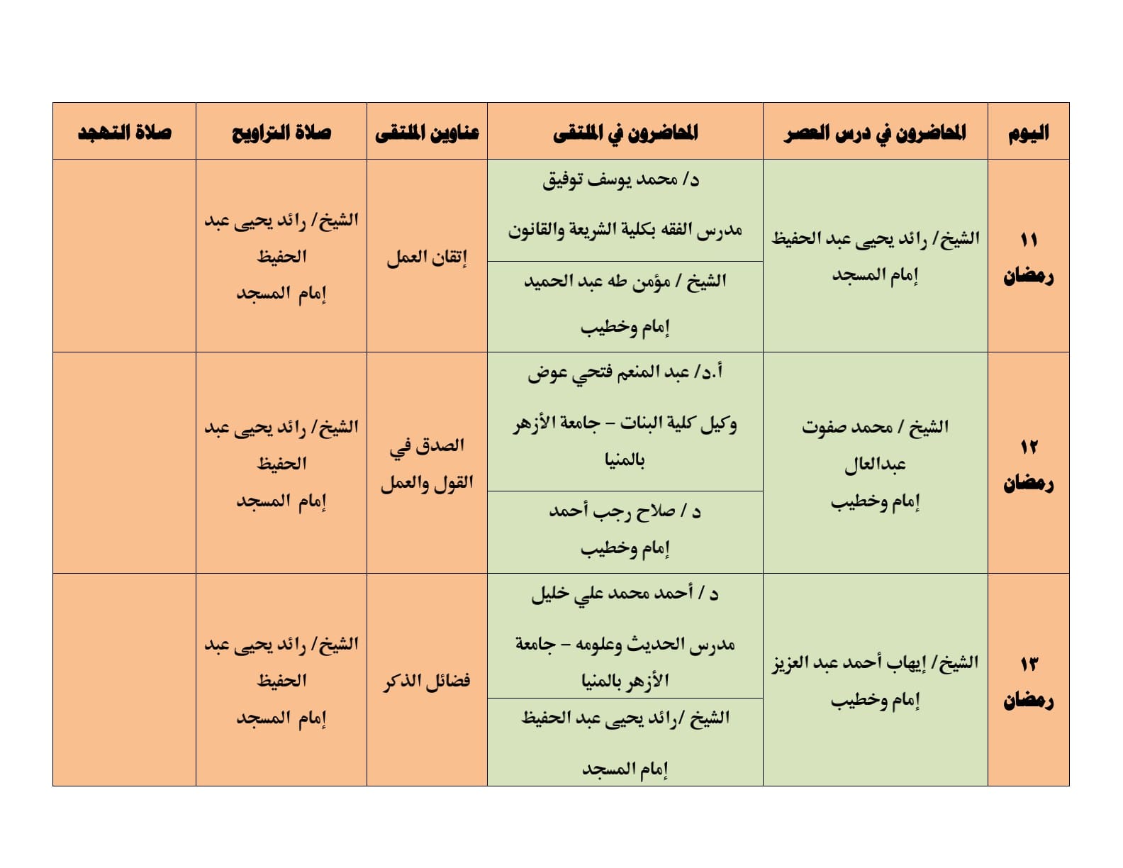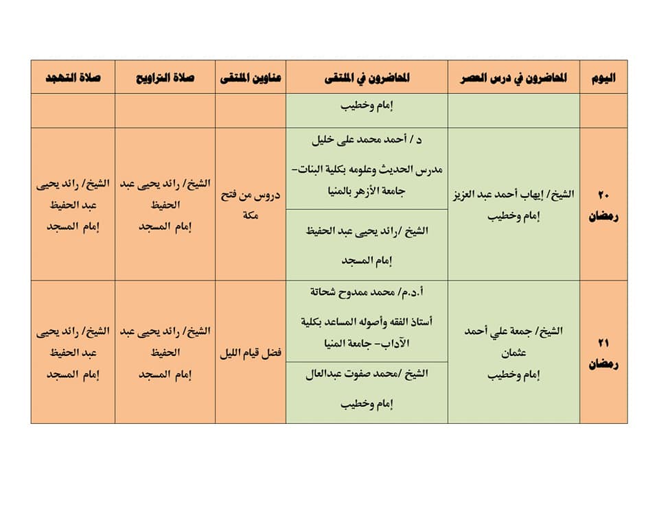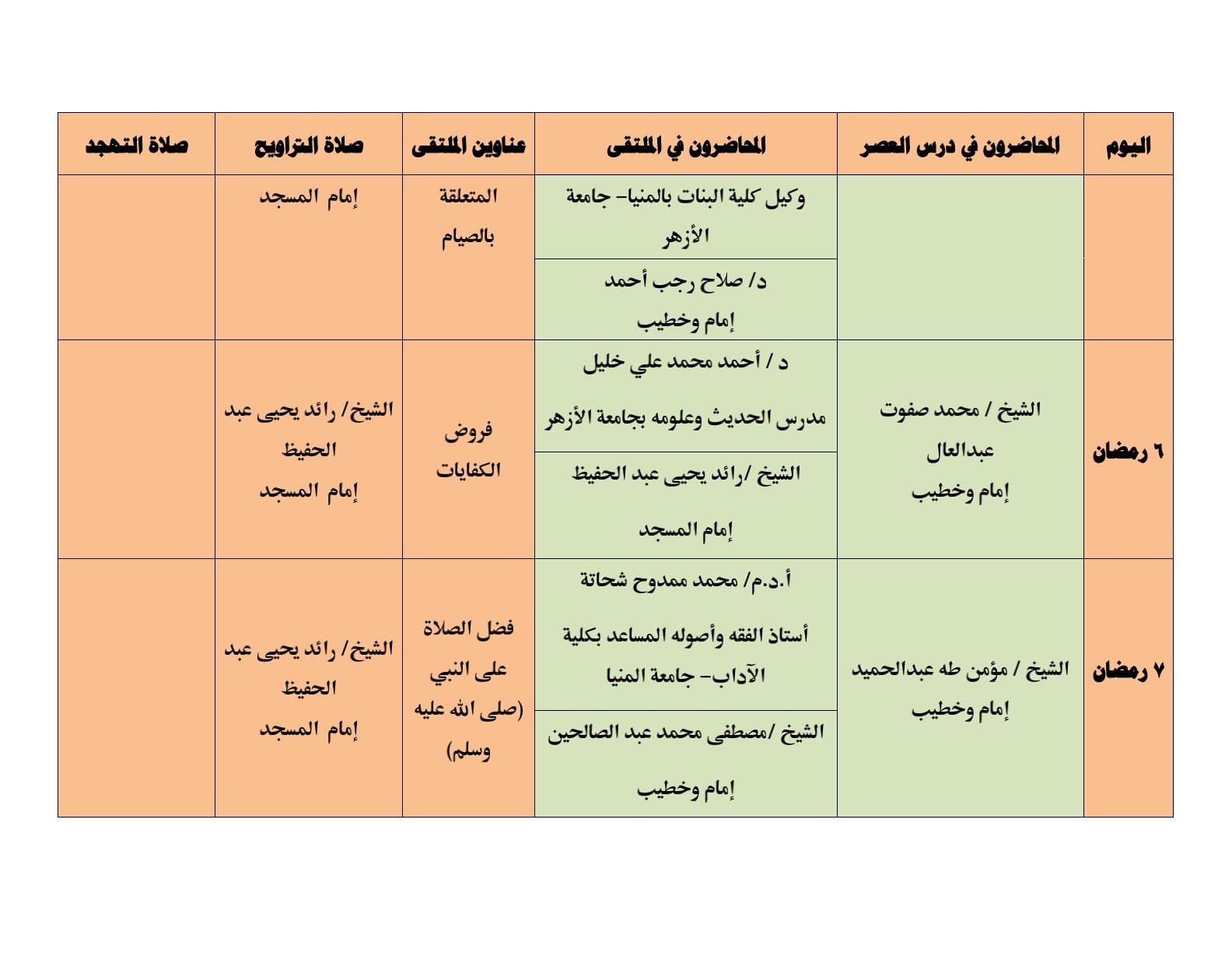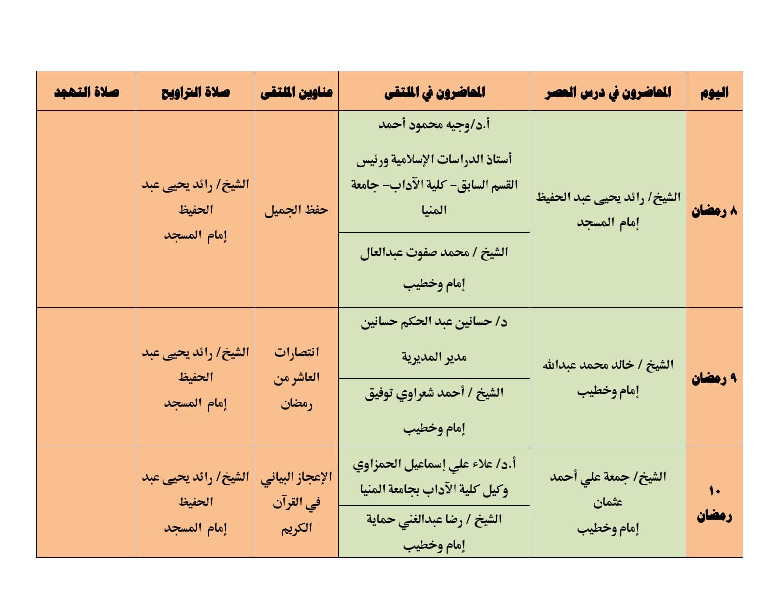 ملتقى الفكر 21 بمسجد الفولي بمدينة المنيا - مديرية أوقاف المنيا خلال شهر رمضان 1445 هـ - 2024م