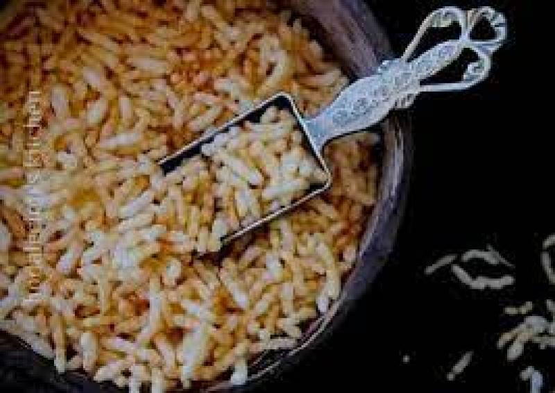 نضع كمية من الأرز في مصفاة معدنية ثمّ ننزلها في زيت غزير على النار ونترك حبة الأرز لتنفش.