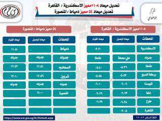 ويترتب علي ذلك تعديل مواعيد قطارات (652 - 300 - 656 - 646 - 649 - 653 - 655 - 657 - 299 - 1209 - 647) طبقًا للجداول المرفقة.