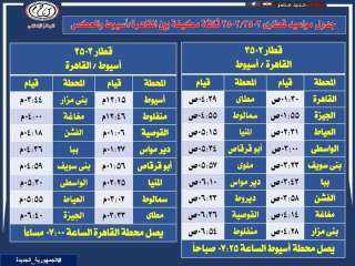 - قطار 4224 محرم بك / الحمام حيث يقوم من محطة محرم بك الساعة 04:20 صباحاً يصل محطة الحمام الساعة 06:00 صباحاً طبقا للجدول المرفق.