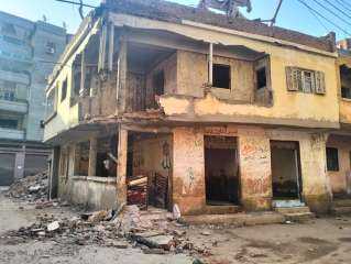 انهيار جزئي لأحد المنازل القديمة ”خالي من السكان” بشارع السكة الجديدة بالمنصورة
