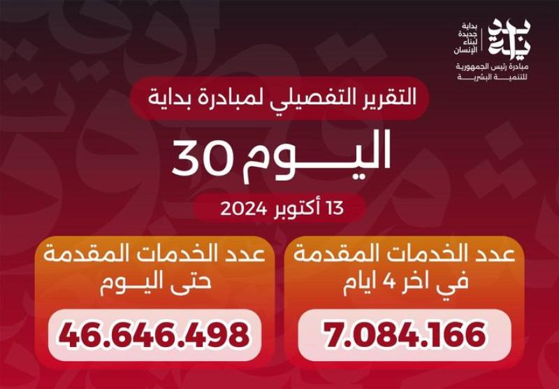 أعلن الدكتور خالد عبدالغفار نائب رئيس مجلس الوزراء للتنمية البشرية ووزير الصحة والسكان، وصول إجمالي عدد الخدمات التي قدمتها مبادرة «بداية جديدة لبناء الإنسان» منذ انطلاقها لـ46 مليون و646 ألفا و498 خدمة.