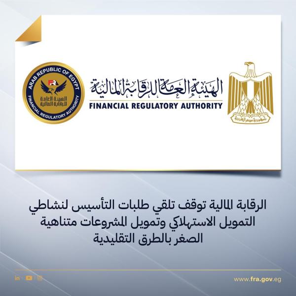في إطار الحرص المستمر من قبل الهيئة العامة للرقابة المالية، على تحقيق الاستقرار المالي للأسواق والمؤسسات المالية غير المصرفية بما يعزز من دورها في الاقتصاد القومي وتلبية احتياجات الأفراد، وبناءً على التنامي الملحوظ للرخص الجديدة الصادرة عن الهيئة لشركات وجهات وجمعيات تعمل في نشاطي التمويل الاستهلاكي وتمويل المشروعات متناهية الصغر، وهو ما يستتبعه ضرورة تأكد الرقيب من الملاءة المالية لمقدمي الخدمات، أوقفت الهيئة العامة للرقابة المالية، قبول طلبات التأسيس والموافقة المبدئية على تأسيس الشركات الراغبة في الحصول على ترخيص من الهيئة بمزاولة نشاطي تمويل المشروعات متناهية الصغر أو التمويل الاستهلاكي بالطرق التقليدية، كما يوقف قبول طلبات الحصول على الترخيص بمزاولة نشاط التمويل المشروعات متناهية الصغر للجمعيات والمؤسسات الأهلية، وذلك لمدة عام قابل للتجديد، وفقاً للقرار رقم 184 لسنة 2024.