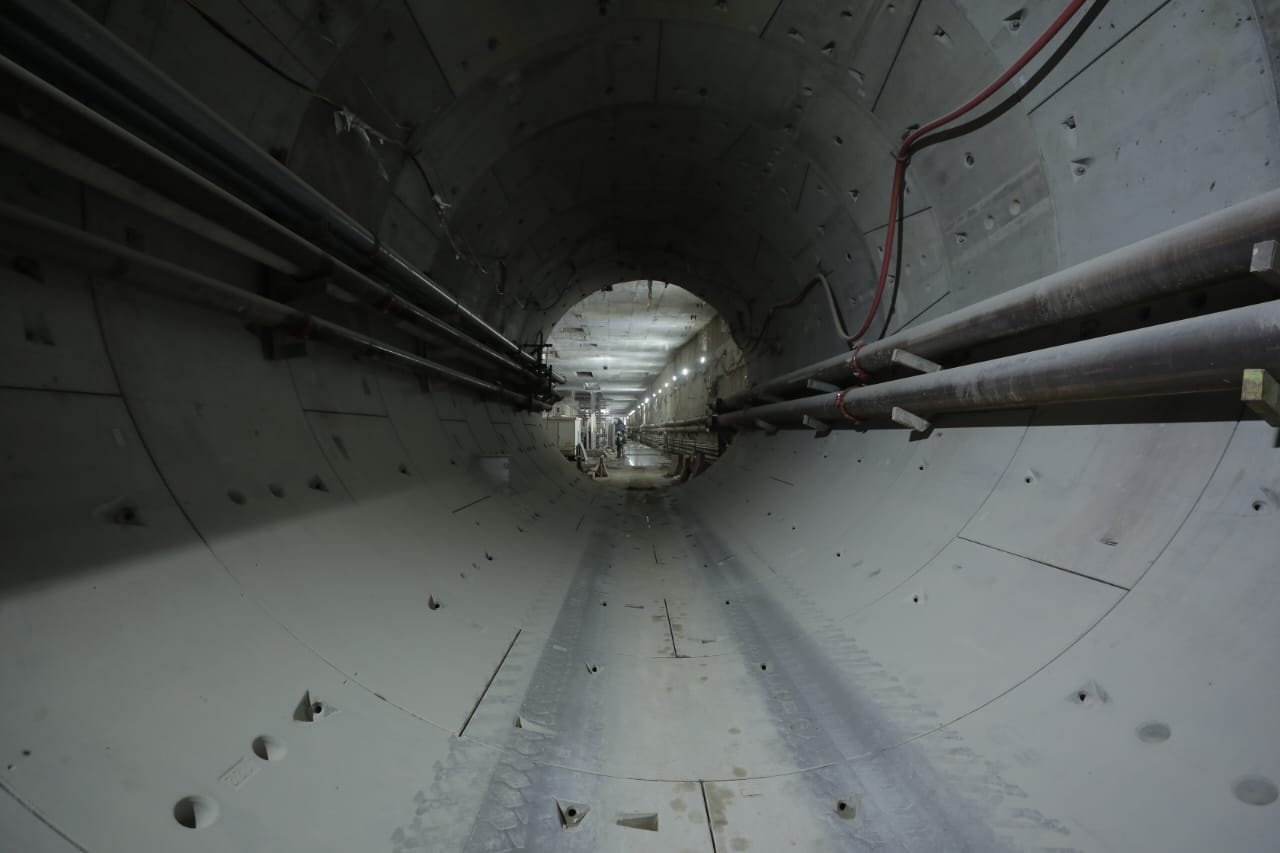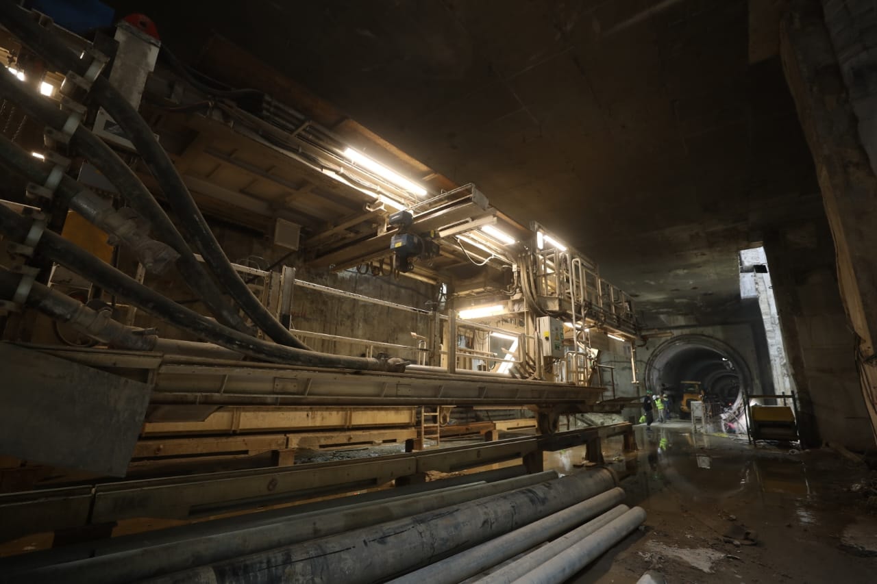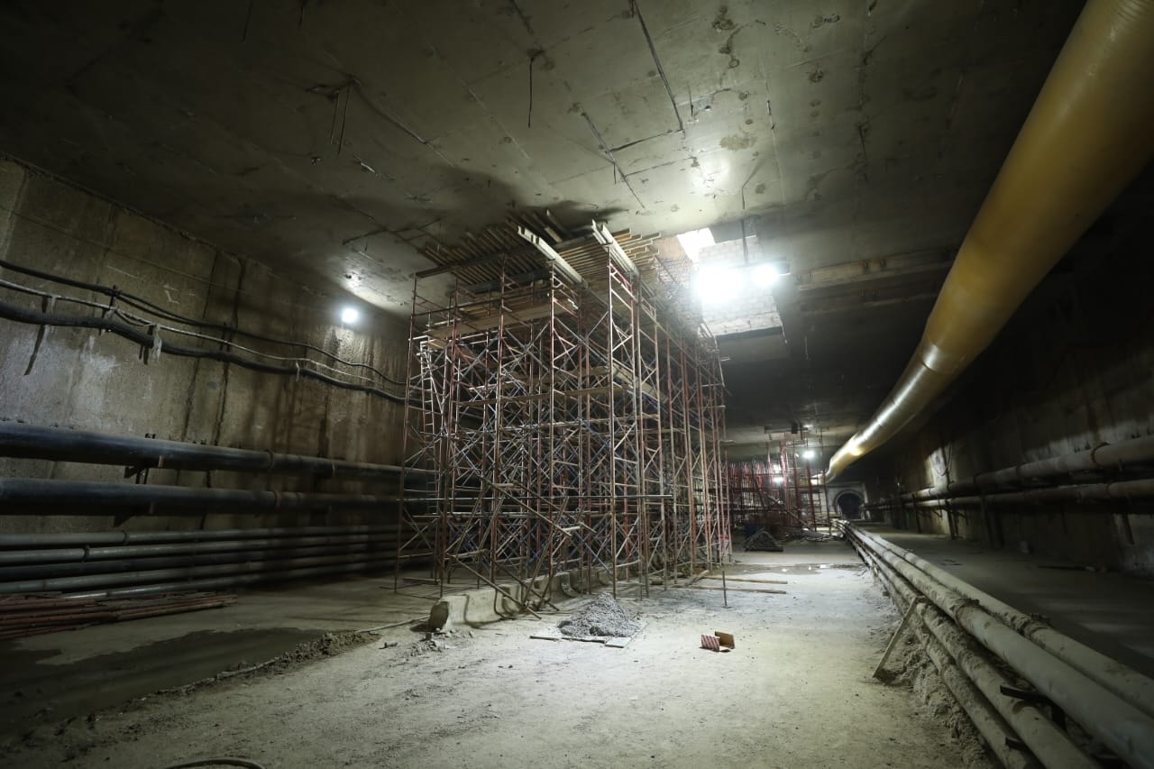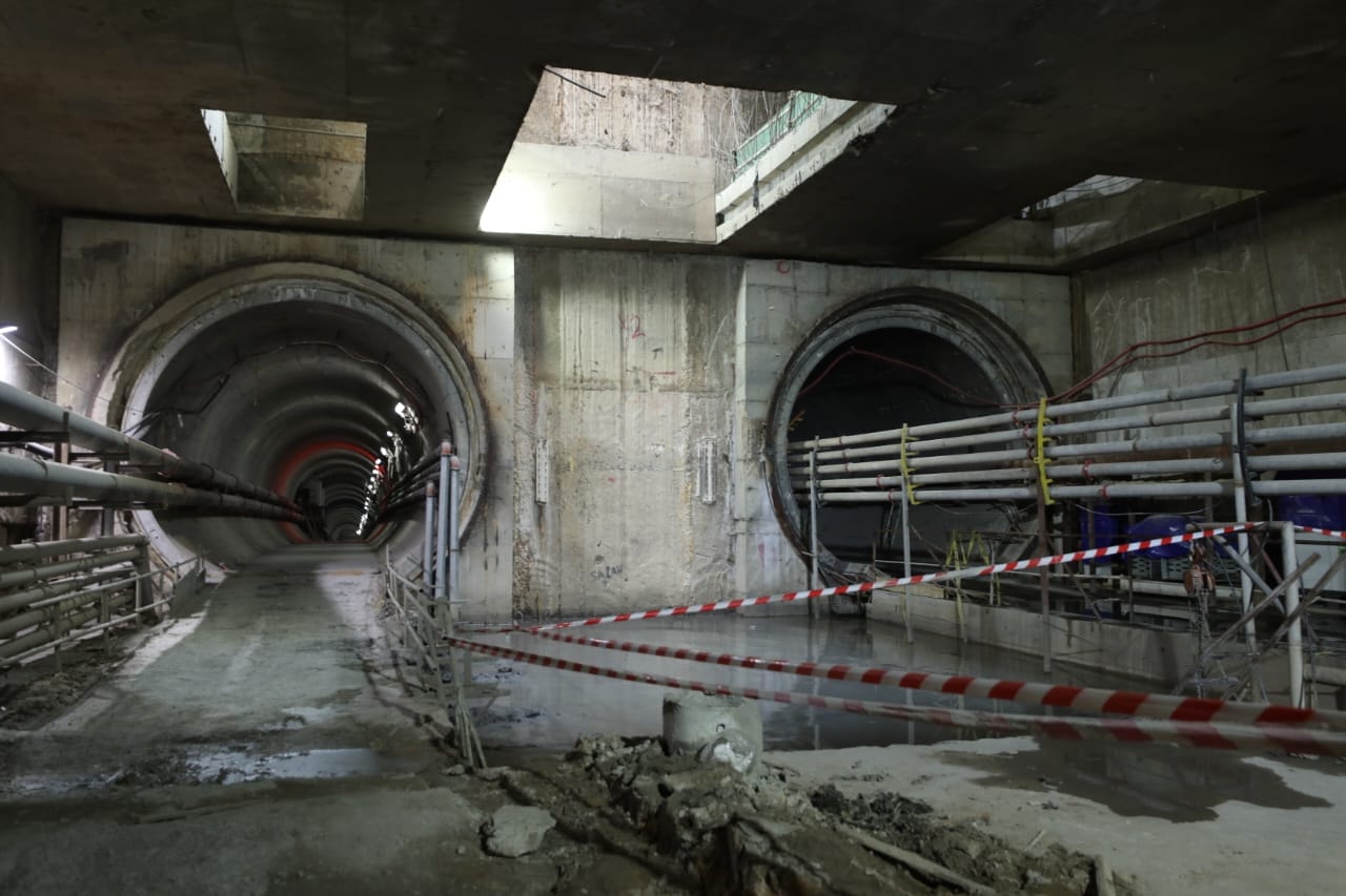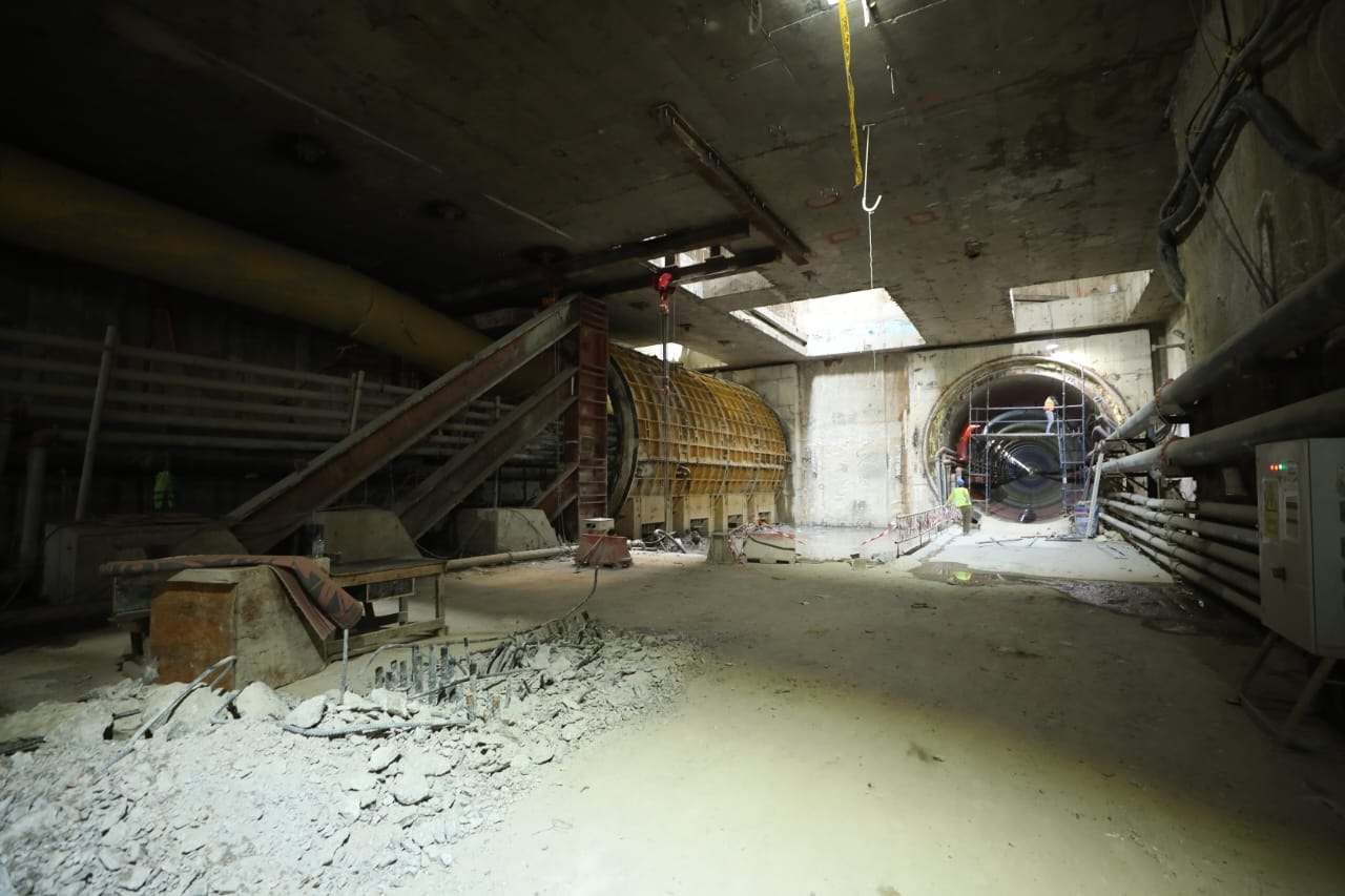 يجري حالياً تنفيذ الأعمال الإنشائية بالمحطات وأعمال الحفر النفقي لنفقي المترو (نفق لكل اتجاه) بواسطة 4 ماكينات حفر نفقي (2 ماكينة لكل اتجاه)