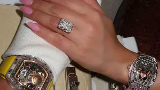 خطف خاتم الزواج الأنظار بمجرد ظهوره في الصور، حيث بدا بتصميم لافت يضم فصًا كبيرًا لامعًا، وتشير تقديرات بعض التقارير إلى أن قيمته تبلغ نصف مليون دولار، بينما لم تكشف العروس أي تفاصيل عن الشخص الذي ارتبطت به رسميًا.