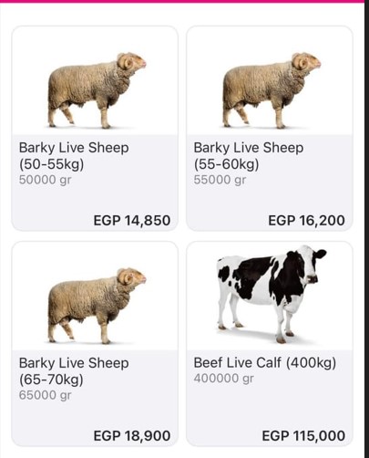- على الفور تظهر لك أوزان الخرفان بأسعارها المختلفة، وبمواصفاتها كاملة.
