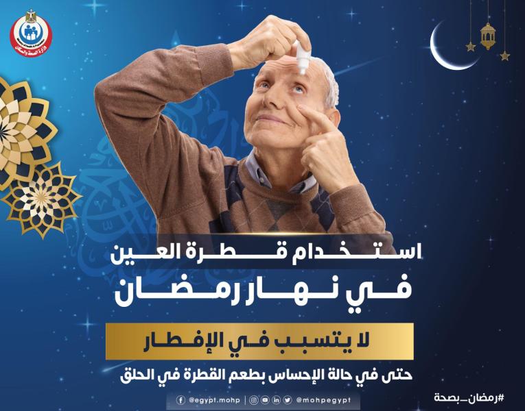استخدام قطارات العين في نهار رمضان لايتسبب في الإفطار حتي في حال الاحساس بطعم القطرة بالحلق .