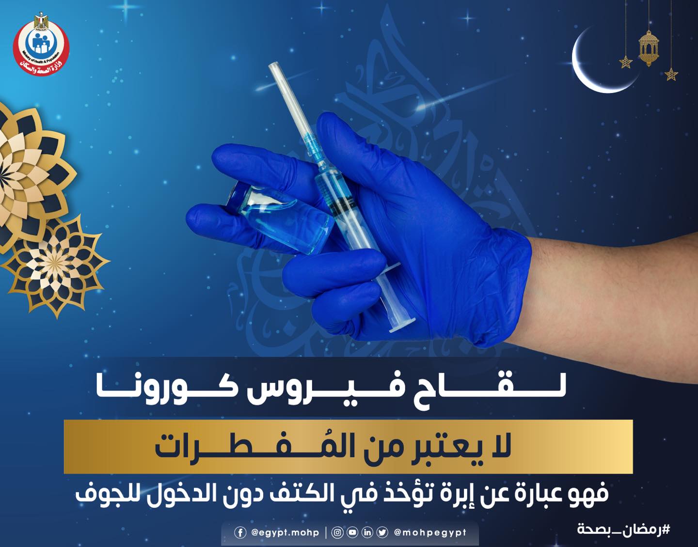 لقاح فيروس كورونا لايعتبر من المفطرات ،فهو عبارة عن ابرة تؤخذ بالكتف دون دخول الجوف .