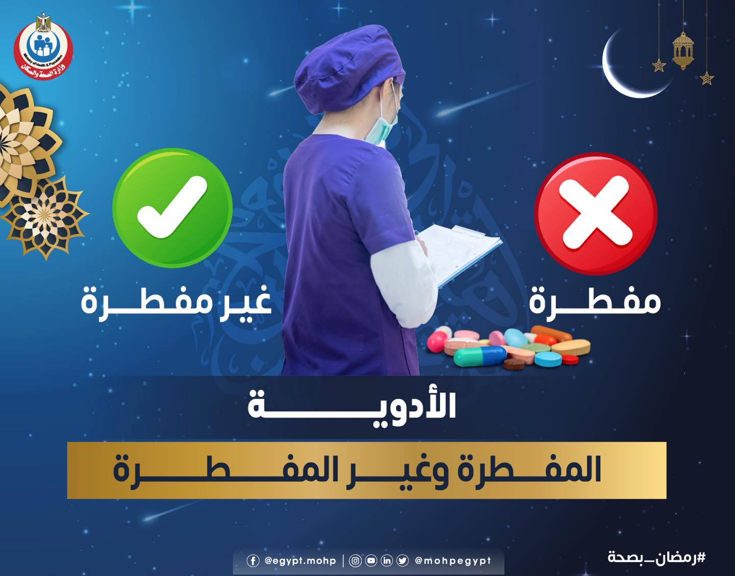 كشفت وزارة الصحة والسكان عن عدد من التعليمات الضرورية للأدوية والمستلزمات الطبية المفطرة وغير المفطرة بنهار رمضان .